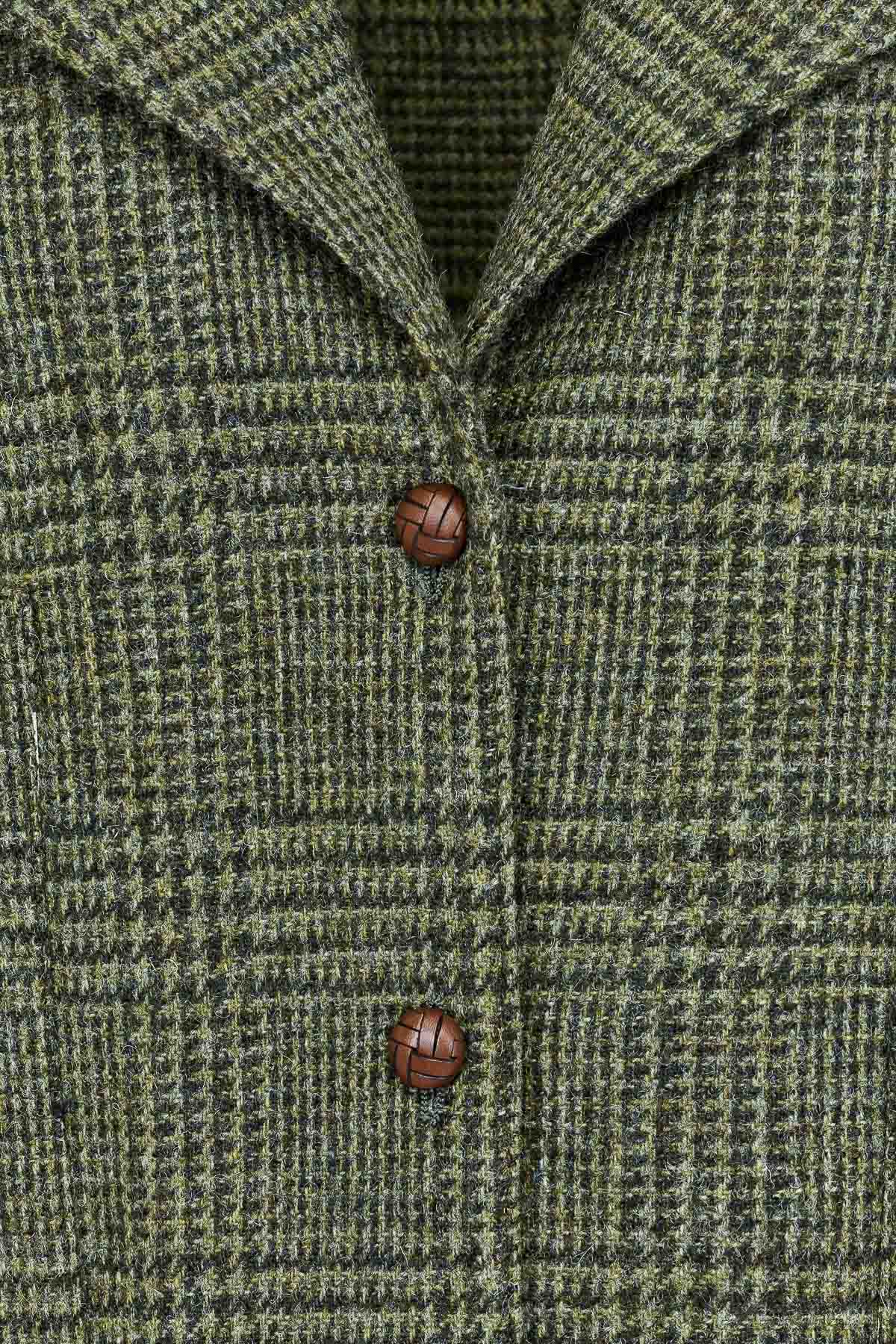 Loose fit shirt with blazer collar, front pockets and leather buttons.